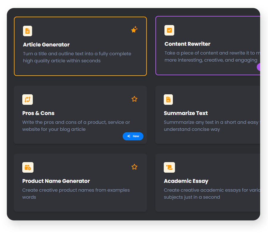Article Generator Content Improver Blog Contents Ad Creations Text to Speech and much more!